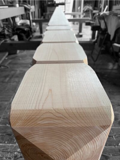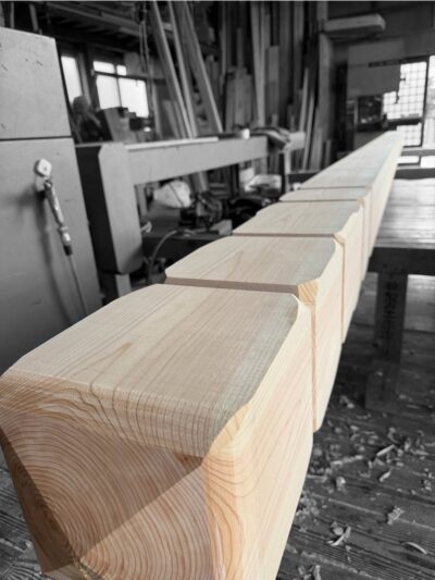 21cm角の材にて、長さはおよそ7m。意匠も寸法も、当時そのままを踏襲しています