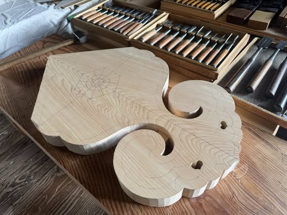 木成鑿・丸鑿を用いて外郭部を突き終えたところです