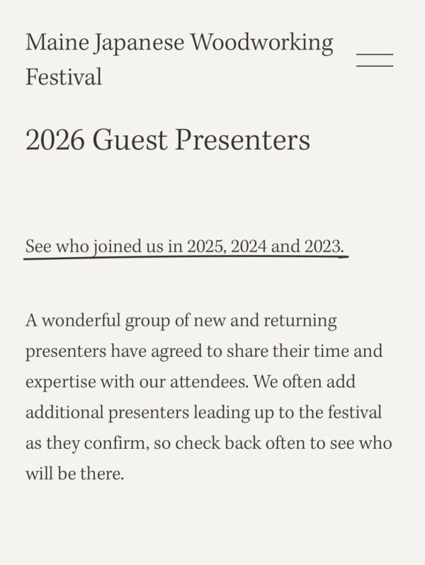 【 Maine Japanese Woodworking Festival 2026 】に、特別講演者としてお招きいただきました